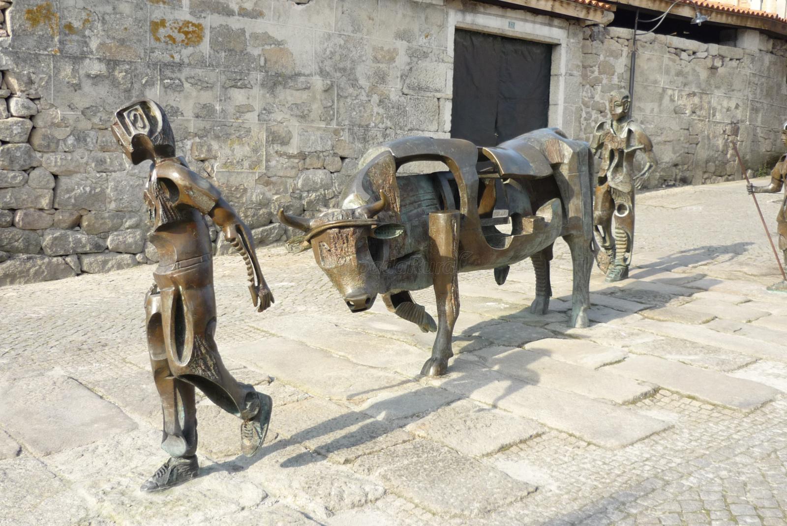 En la plaza do Eiró de Allariz se encuentra el conjunto escultórico que homenajea a la fiesta más importante y famosa de este bonito pueblo ourensano: A festa do boi (la fiesta del buey).